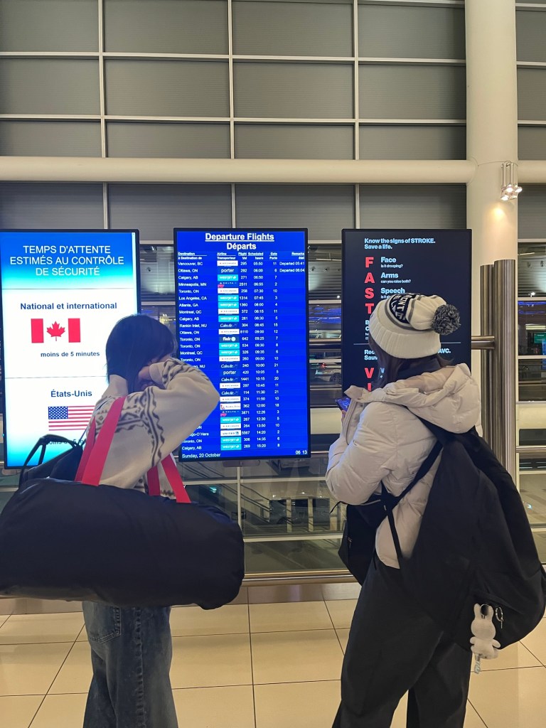 I always took off bus little far from my house. Because I really like this weather and temperature. I found so many cute decoration in front of housesNear my house, there is Japanese restaurant. I and Yuwon found bubble tea in that shop. And it was only $5.00. So we bought Macha bubble tea and mango bubble tea. The stuff gave us the left over. But she mixed the juice so it was not tasty lolI went to Asina boin Zoo. This park is famous for white bears. We were excited to watch it. But we couldn’t watch it because every white bears were sleeping. And so far from the garras. lolIn this day, my family were invited to a party. This party is celebrating 100 anniversary about airplane???? I don’t about the detail. By the way, we were invited. At the party, we could face painting, eating cookies, using some goods of army and also taking pictures with the callacter. I think this party was for children.We got a passport lolWith my family, we went to a Asian mart. These were so many stuffs of Japan and the customers are all Asian. Mom spent about $150. Thanks Ivy.I went to a park with Isabel. We did tag. Her physical is really crazy. I think I lost my weight because of her. I watched Aurora*・ from my house, it was little difficult to watch it. Although , friends who lives in another town could watch Aurora too clearly so I post another friend’s pictures lol. On the toilet wall, there are some messages. I went to a cake shop with my friends. This cake shop was trend between ELP students. so we went there and ate super big cake. Too sweet for me. We went art gallery. There is not so interesting things…I went to a nail salon. I did remove my nail, nail extensions and gel nails. The quality was perfect. But the extensions were sticked by strong glue. So I’m afraid about the way to remove those hahahaThis is my dairy life. Eating bread and going shoppingI went to an outlet stores with Yuwon and Yeonju. When Yeonju used a fitting room, her name was written on the mirror. So I took a picture lolThis is thanks giving day food!I did a hiking with family. We also went to a pumpkin shop for Halloween party.Me and Yuwon played outside at night. Because of the full moon, we were little crazy lol.I ate pho! I have a classmate from Vietnam. She invited me to a Vietnam restaurant.It was so tasty. This Tim Horton is pumpkin taste.I went to a stroll with Yuwon, Yeonju and MaiI was super hungry so I ate cup noodles before eating dinner. Time to trip!!!!!!!! Day 1