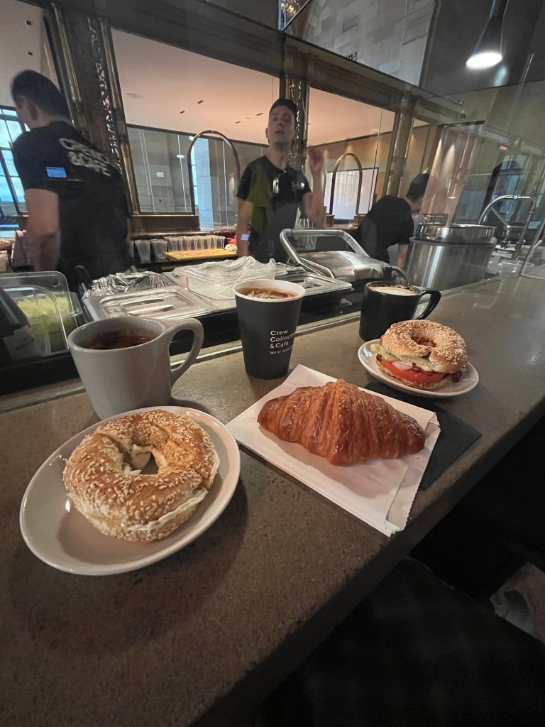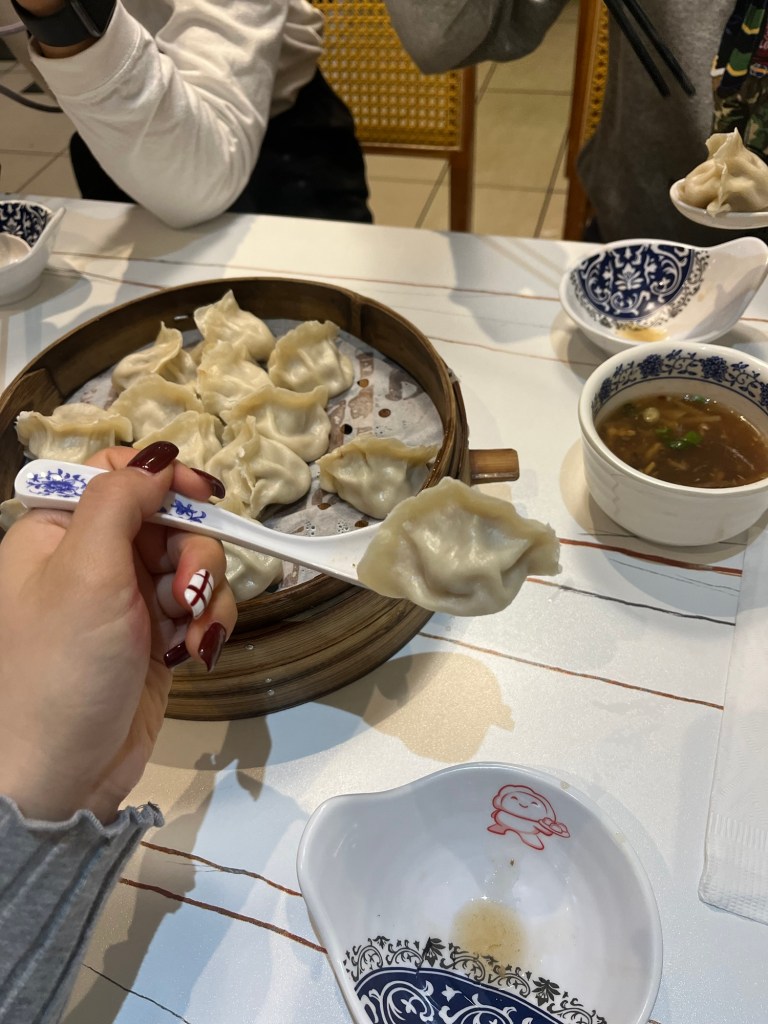 We ate morning at a super luxury cafe. The cafe was a bank so the inside design was super gorgeous. We went Notre-Dame Cathedral. I was almost crying because of its beauty. I will never forget this sight, smell and also music. We went a Christmas store and china town. The dumplings were super crazy.