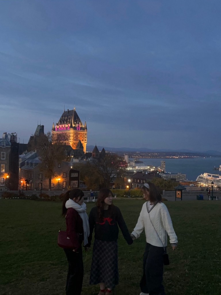 We moved to next destination,Quebec. We ate big breakfast in a famous restaurant. The restaurant was little expensive but the service was super good. I love the stuff. Quebec is shooting place of famous Korean drama. Hana loves the drama so we took so many pictures. And we wanted to visit local place so we went to a library. At night, we went to a park and spent relax time I love this time❤︎