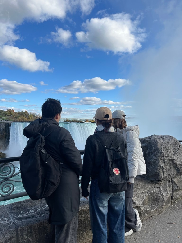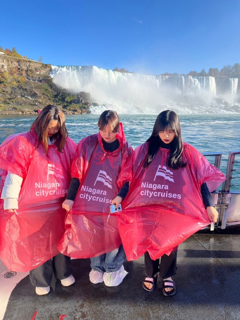 We went to the Niagara fall. It took about 3 hours to go there by bus. I love the nature near the fall. Of course we rode a boart! We decided to go there with no- makeup. It was good decision lol. We spent long long time in there.
