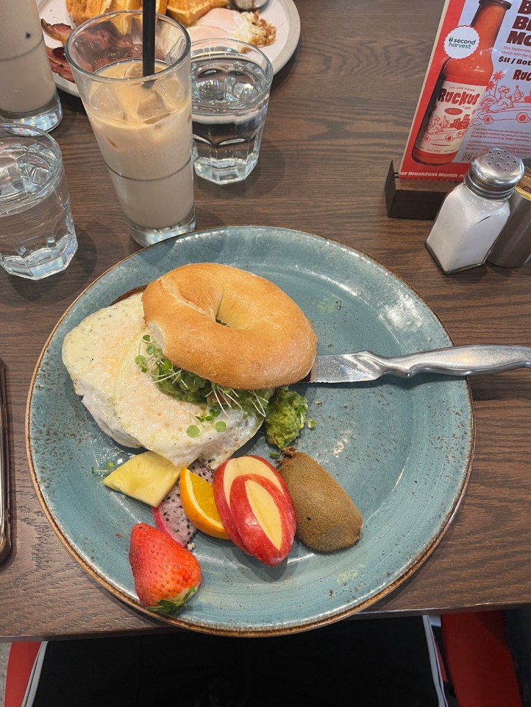 We took fright at 13pm so we ate breakfast near the hotel.