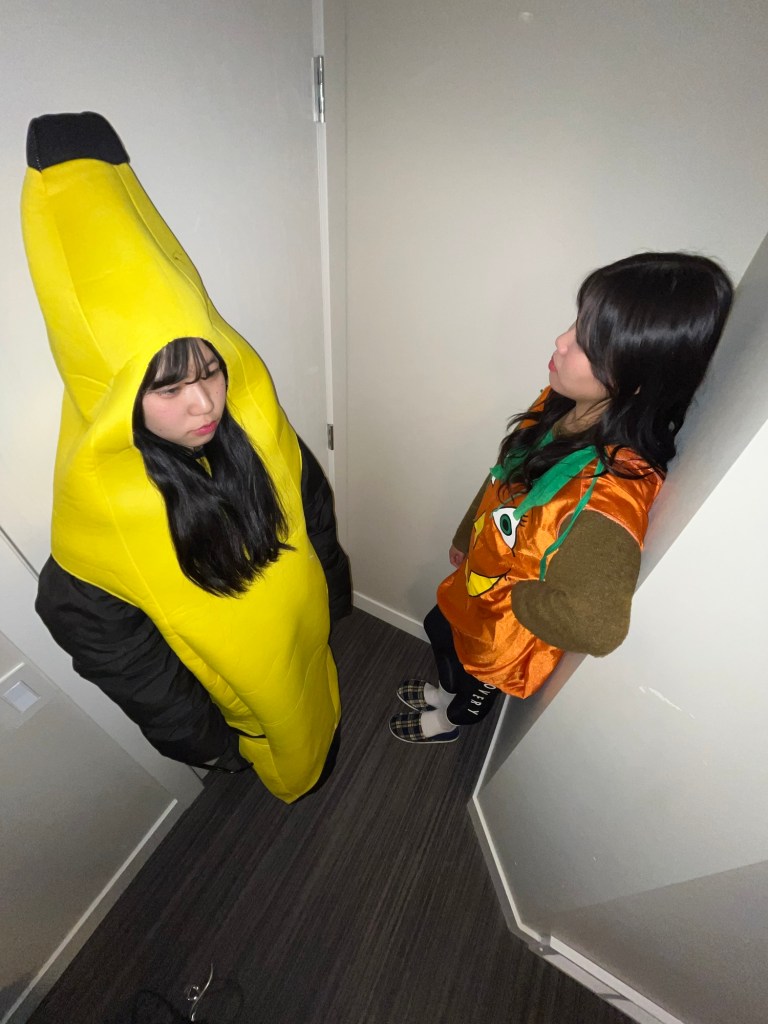 Happy Halloween!!! Ivy suggested us to say “trick or treat “ with twins. I was so excited about it because this was farts experience for me to say the words! Me and Yuwon wore vegetable costume. lol we wanted to do some funny things. Mai and Yeonju imitated “APT” super cute. After strolling, I ate お茶漬け. I made it for everyone. I think I must not buy snacks any more…..