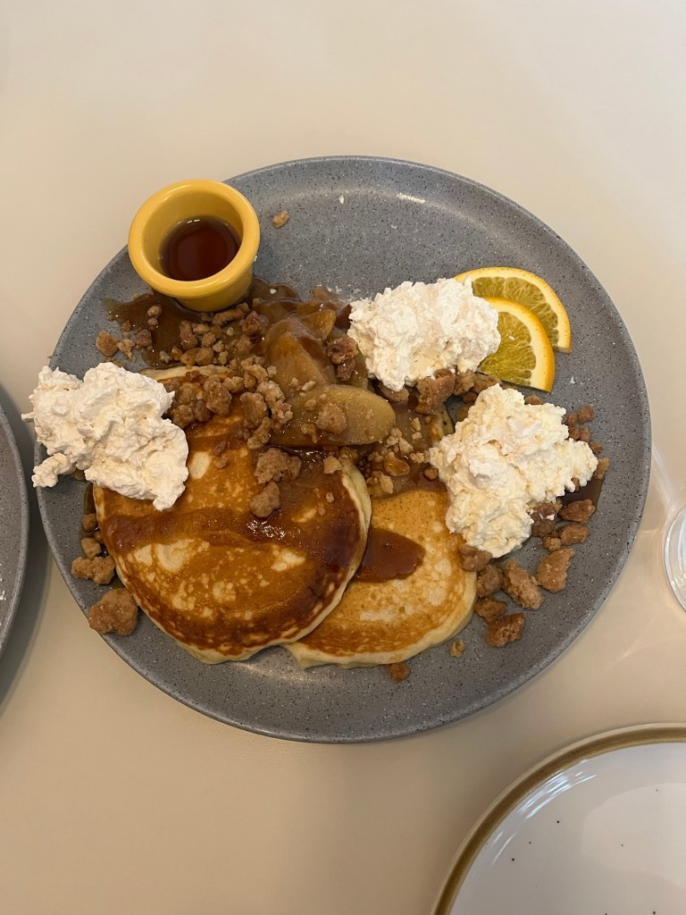 I tried to do ice skate!!! I went there with my classmate and teacher. The teacher was an ice skate player so she could do some jump. Although, we had an afternoon class, skipped it and went a cafe. We ate apple pancake so tasty.