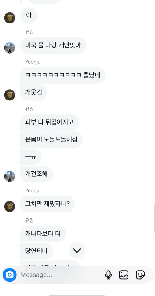 Although we are not in the same country,of course , we always chat as normal. But the problem is they always use only Korean. So I need to translate it lol.